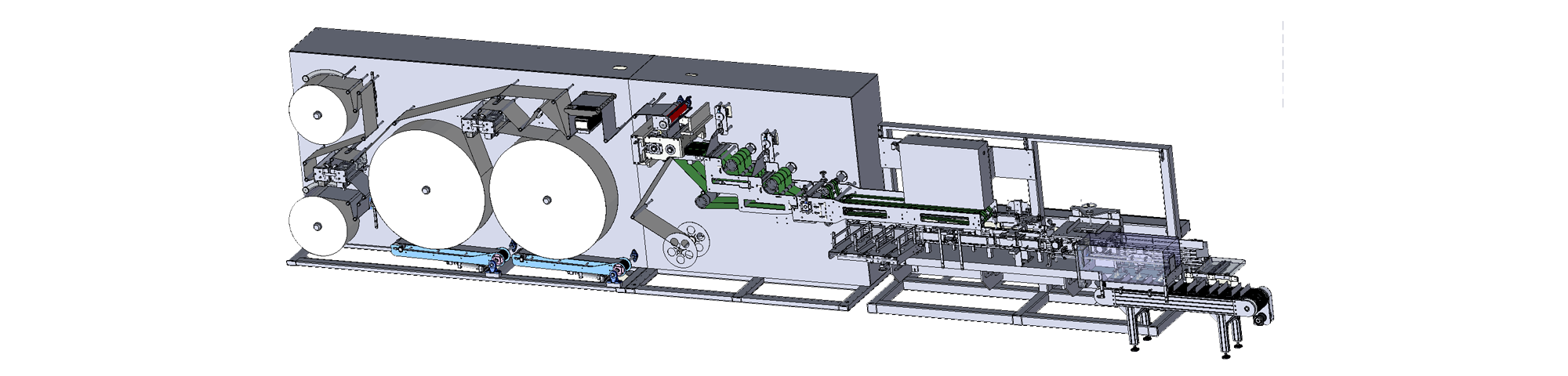 基材軸數(shù)設(shè)置:2軸面膜基材,2軸襯墊,在線自動駁接