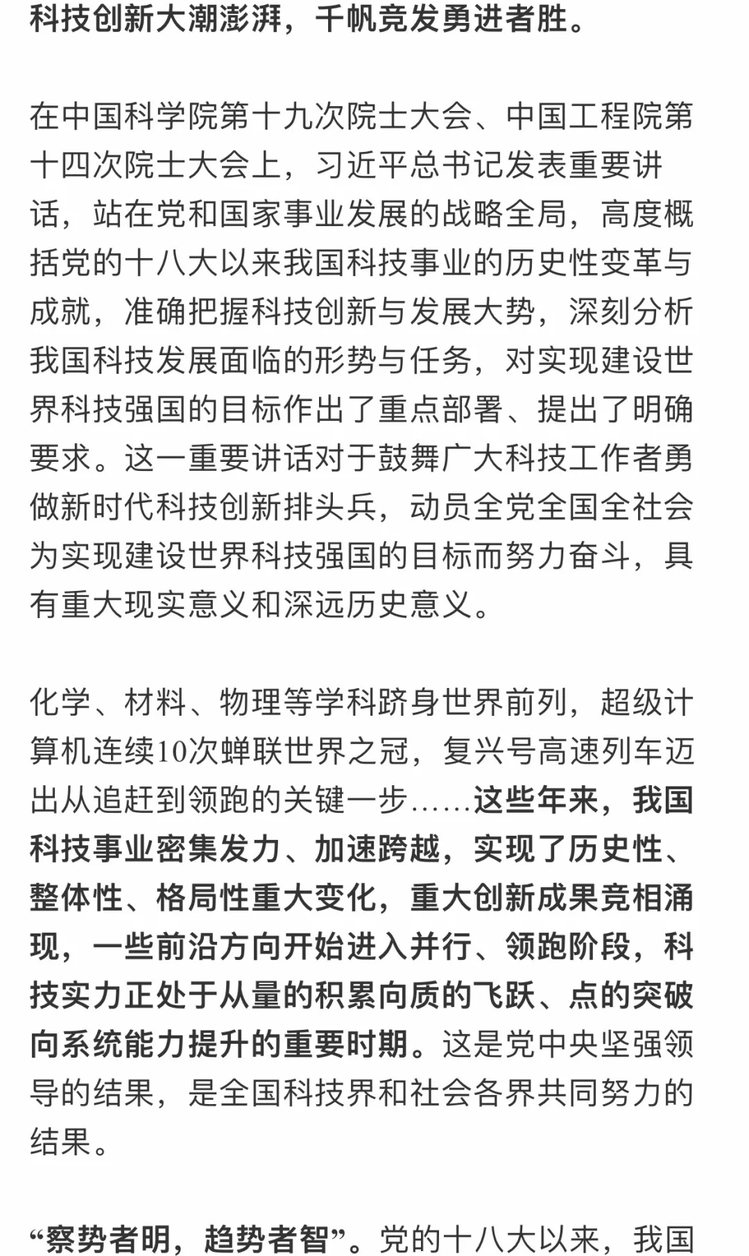 深刻把握科技創(chuàng)新與發(fā)展大勢(shì)—— 一論學(xué)習(xí)貫徹習(xí)近平總書記兩院院士大會(huì)重要講話