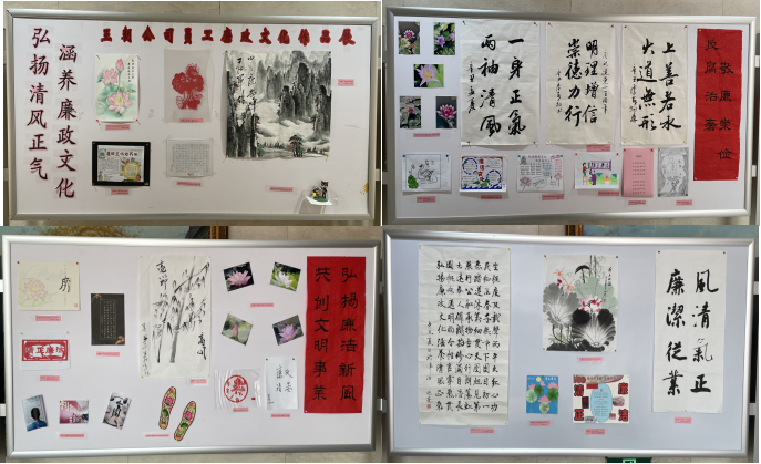 本次主題廉政文化作品展旨在推動(dòng)黨史學(xué)習(xí)教育與正風(fēng)肅紀(jì)工作相結(jié)合,筑牢黨員干部廉潔履職思想防線,不斷提升公司廉政文化建設(shè)水平。5月初面向全體員工開展廉政文化作品征集活動(dòng)以來,得到了廣大職工的積極響應(yīng)。活動(dòng)共征集到包含書法、繪畫、剪紙、攝影、工藝品制作、手抄報(bào)等多種形式的廉政作品30余件,經(jīng)過集體評選,選出一、二、三等獎(jiǎng)和紀(jì)念獎(jiǎng)作品分列四組展板,全部進(jìn)行展出。