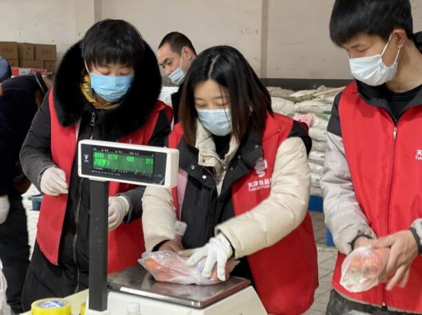 商貿(mào)公司嚴(yán)格執(zhí)行生產(chǎn)、物流、商品全鏈條的防疫消殺流程,保證人、車(chē)、物的防疫安全。特殊時(shí)期,居民為減少外出次數(shù),一次性采購(gòu)量較大,為此,公司加大產(chǎn)品供應(yīng)力度,凌晨5點(diǎn)滿(mǎn)載蔬菜的貨車(chē)就陸續(xù)抵達(dá)南開(kāi)區(qū)分倉(cāng),7點(diǎn)公司員工到崗對(duì)蔬菜進(jìn)行分揀、打包、稱(chēng)重,9點(diǎn)新鮮、充足的蔬菜準(zhǔn)時(shí)到達(dá)各保供點(diǎn)位?;A(chǔ)民生食品一應(yīng)俱全,保證各點(diǎn)位供應(yīng)不脫銷(xiāo)、不斷貨,便民、貼心的服務(wù)得到了周?chē)用竦囊恢潞迷u(píng)。“食品集團(tuán)的保供點(diǎn)位解決了我們?nèi)济贾?,我們這小區(qū)老年人多,給我們帶來(lái)了便捷,小伙子們不怕麻煩,耐心為我們服務(wù),讓我們心里很踏實(shí)。”居民李大爺拎著剛買(mǎi)完的新鮮蔬菜安心的說(shuō)道。