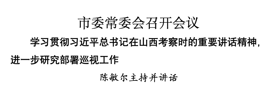 本報(bào)訊(記者 于春灃 劉國棟)7月13日,市委常委會(huì)召開會(huì)議,學(xué)習(xí)貫徹習(xí)近平總書記在山西考察時(shí)的重要講話精神,進(jìn)一步研究部署巡視工作。市委書記陳敏爾主持會(huì)議并講話。