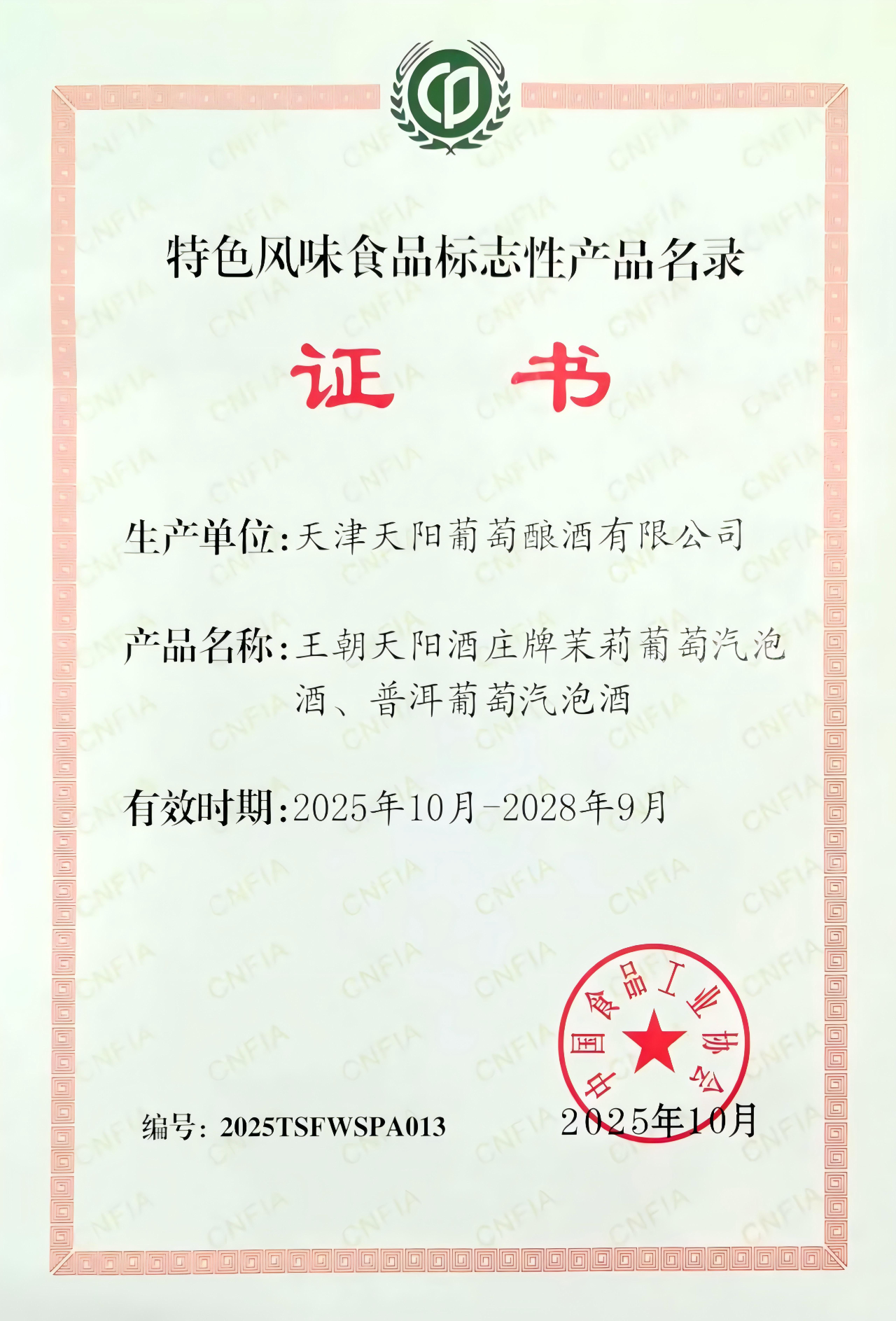 近日,王朝公司喜獲佳音——王朝天陽(yáng)酒莊茉莉葡萄泡酒與普洱葡萄泡酒成功入選中國(guó)食品工業(yè)協(xié)會(huì)認(rèn)定的第二批“特色風(fēng)味食品標(biāo)志性產(chǎn)品名錄”。標(biāo)志著王朝公司的產(chǎn)品實(shí)力與品牌發(fā)展獲得了行業(yè)與市場(chǎng)的高度認(rèn)可。