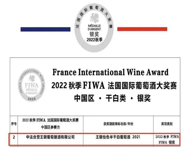 日前,2022秋季FIWA法國(guó)國(guó)際葡萄酒大獎(jiǎng)賽中國(guó)區(qū)獲獎(jiǎng)酒款名單發(fā)布,王朝旗下王朝七年藏釀品第二代干紅葡萄酒獻(xiàn)禮版(2013)、王朝怡色半干白葡萄酒(2021)兩款核心產(chǎn)品分別斬獲金、銀兩項(xiàng)大獎(jiǎng)。獎(jiǎng)項(xiàng)的獲得不僅代表國(guó)際上對(duì)王朝產(chǎn)品品質(zhì)的認(rèn)可,更提振了公司士氣,堅(jiān)定了發(fā)展信心。