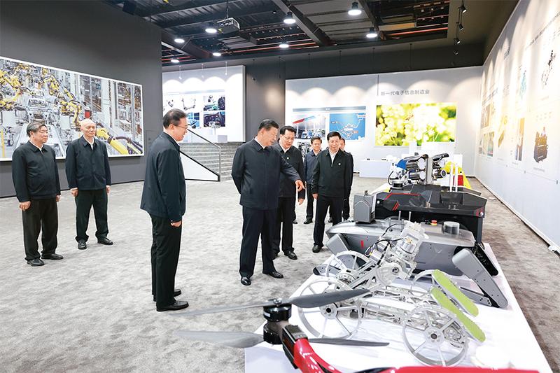 2023年10月10日至13日,中共中央總書記、國家主席、中央軍委主席習近平在江西考察。這是11日上午,習近平在景德鎮(zhèn)市昌河飛機工業(yè)(集團)有限公司考察。 新華社記者 燕雁/攝