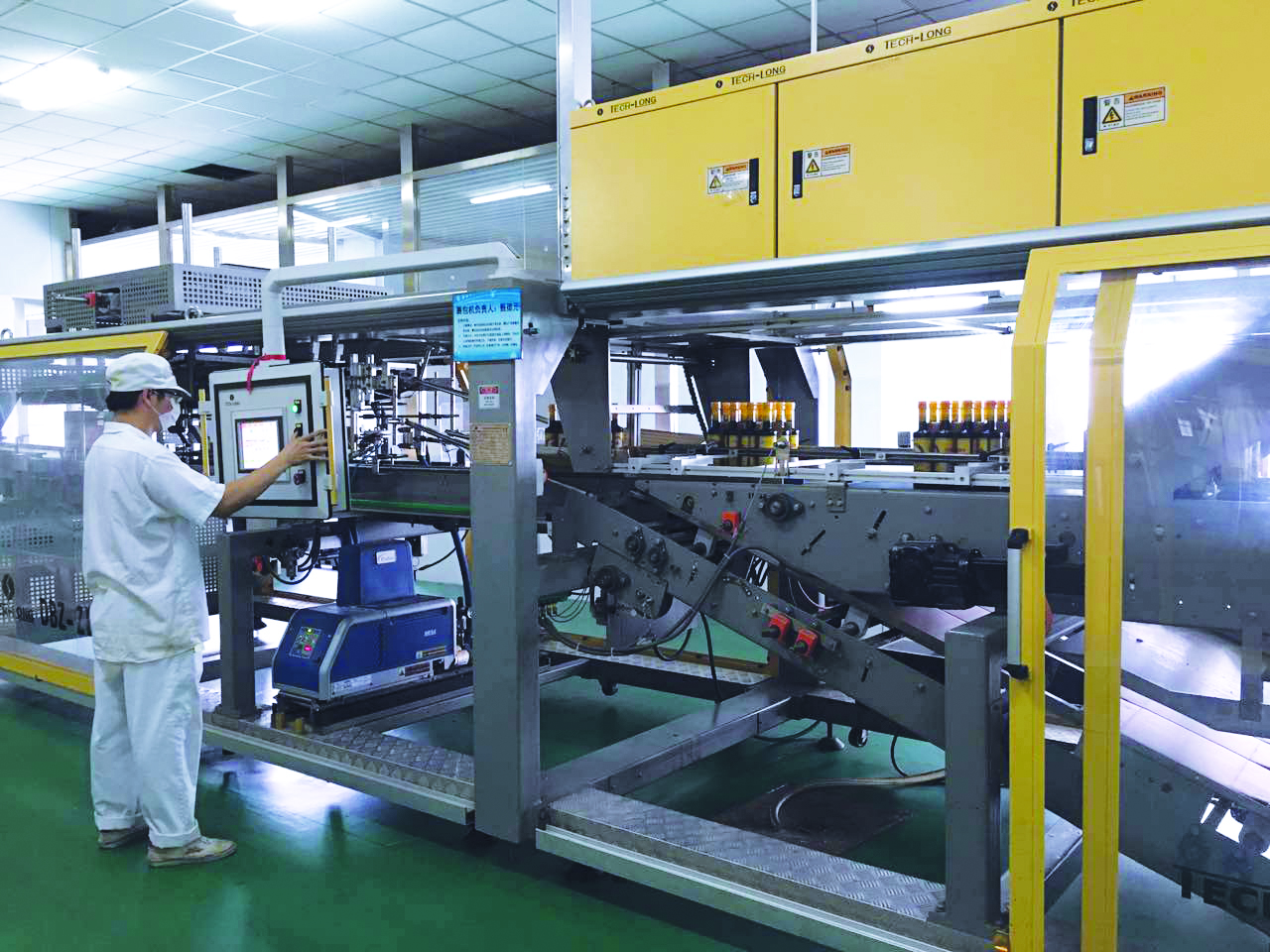 作為利民公司的工業(yè)游參觀景點,五車間要時刻保持以最整潔規(guī)整的狀態(tài)呈現(xiàn)在游客面前。五月的一天,有一批游客在參觀過程中遇到了套標(biāo)機突發(fā)性故障,當(dāng)大家期待著保全維修工人來到現(xiàn)場的時候,包裝組的女孩子們已登上維修梯,斷開電源,打開機器,撥弄著、調(diào)試著,并在電子操作屏上點觸著,十分鐘不到,小姑娘喊了一句:“修好了!開機器!”這就是五車間包裝組的效率,也是利民形象的體現(xiàn)。